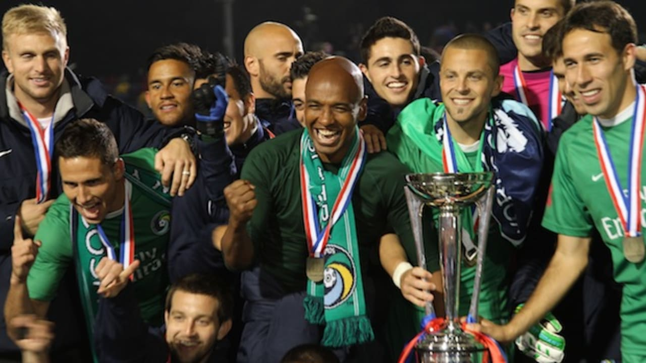 In their first season back, the Cosmos win Soccer Bowl 2013 by defeating the Atlanta Silverbacks, 1-0. Marcos Senna scored the winning goal.